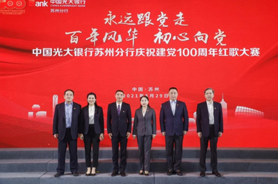 5月29日,由中國光大銀行蘇州分行舉辦的“永遠跟黨走 百年風華 初心向黨”慶祝建黨100周年紅歌大賽圓滿成功!出席本次活動的有光大銀行蘇州分行黨委書記、行長巴威、光大銀行蘇州分行黨委委員、副行長張碩坪,光大銀行蘇州分行黨委委員、副行長施文衛(wèi)、光大銀行蘇州分行黨委委員、紀委書記楊駿、光大銀行蘇州分行黨...